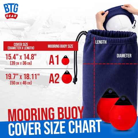 FOR A1 & A2 Mooring Buoys: These fender covers are designed to fit most styles of double-eye ribbed fenders. To find the appropriate size, please refer to our sizing guide for a perfect fit. With BTG Gear fender covers, your fenders and boat are in reliable hands. Achieve a perfect fit for A1 and A2 buoys with our fender cover designed to snugly accommodate a variety of sizes.